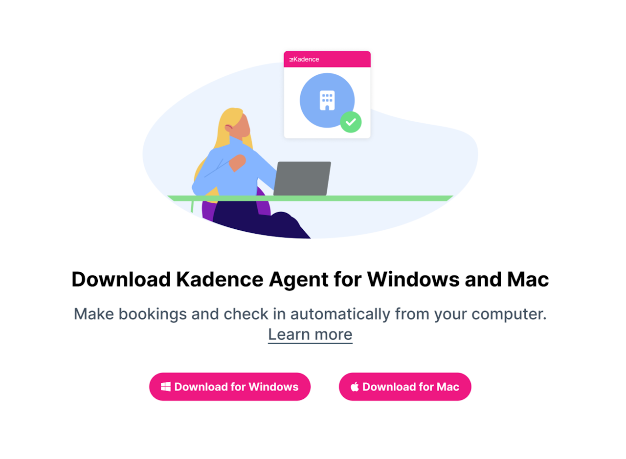 Kadence Agent is an app that enables users to check into their office bookings directly from their desktop system tray.