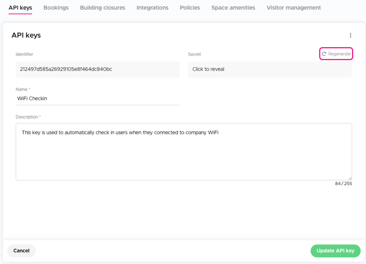 To regenerate your API key secret, follow the steps below: